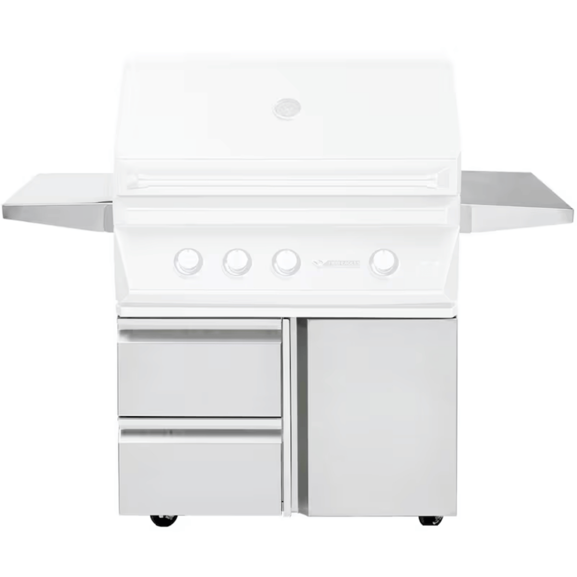 Q: What is the Twin Eagles 36-Inch Grill Cart with Two Storage Drawers & One Access Door (TEGB36SD-B)?