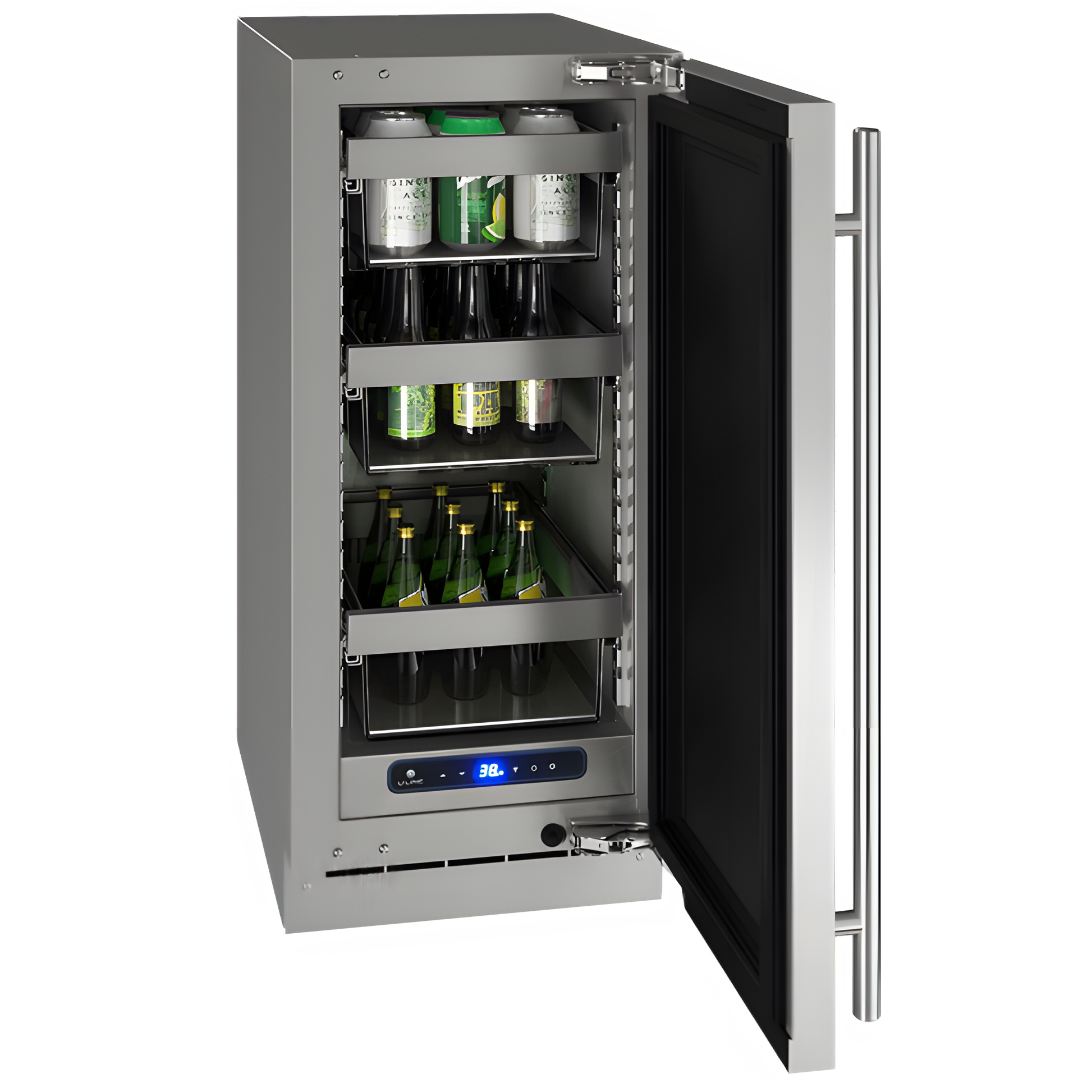Store fresh produce, deli foods, pantry items, beverages, and more in our 15" 5 Class Slide & Secure™ Refrigerator. This product features stainless steel inside and out, convection cooling for quick and consistent temperatures, and a state-of-the-art variable speed compressor. Robust and refined, U-Line’s 5 Class Collection features an industry-exclusive full-depth lower interior allowing you to maximize storage space, adjustable blue and white LED lighting, and U-Adjust™ 19 position adjustment for Slide & Secure™ robust bins to contain and protect. This model can be built-in or used freestanding and is available with stainless steel or integrated door finishes that accept a custom door panel to match your surrounding cabinetry.