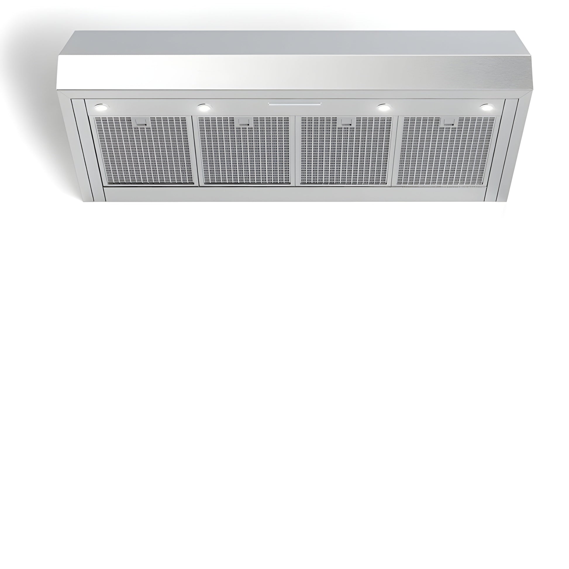 Introducing the Verona 48" Designer Series Low Profile Range Hood, a sleek and functional addition to your kitchen. This range hood is designed with a low profile 10-inch height, making it perfect for installation under an upper cabinet.