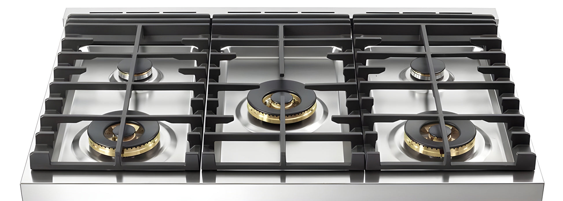 A: The range includes 5 sealed gas burners, including a high-power burner for rapid boiling and a simmer burner for delicate cooking.