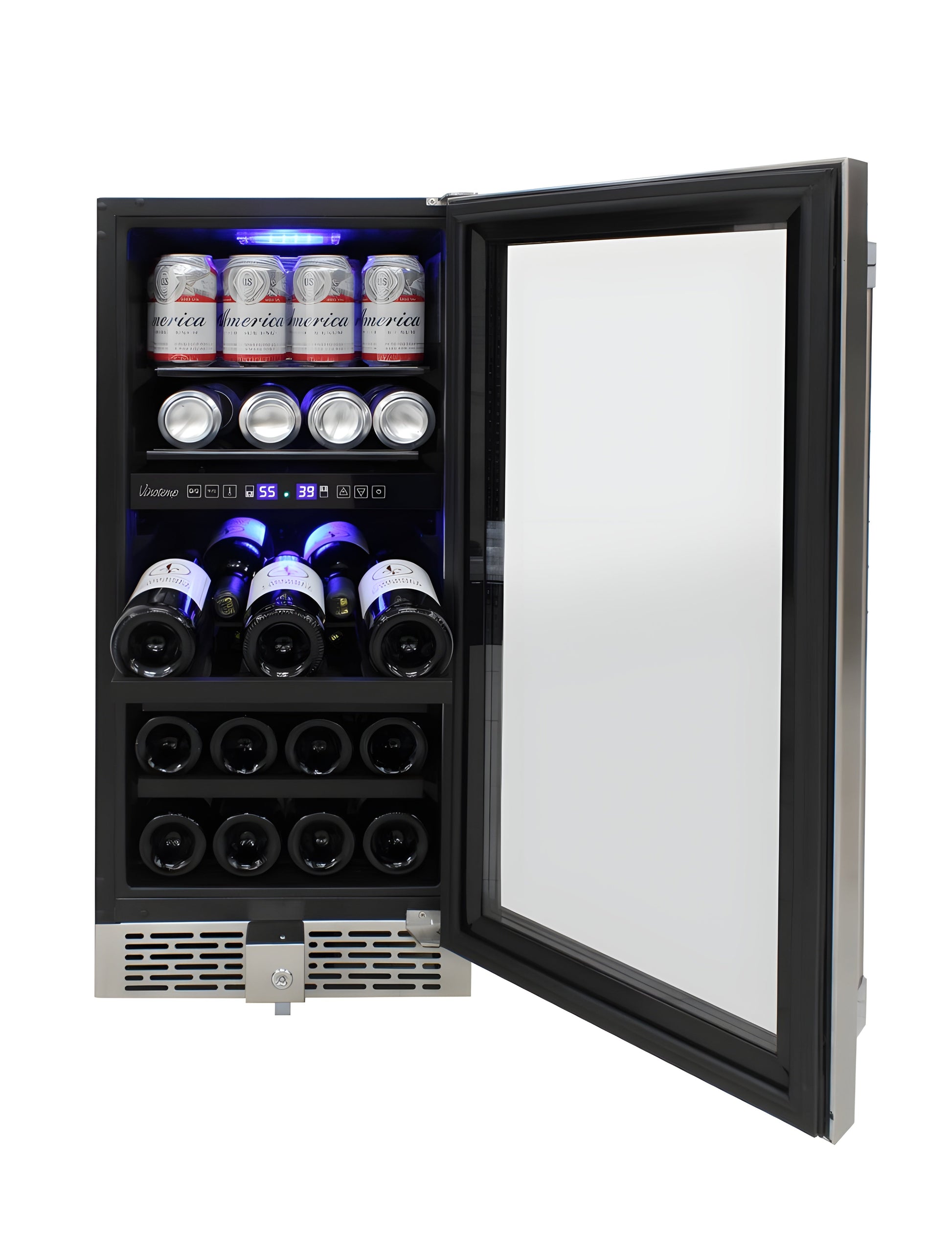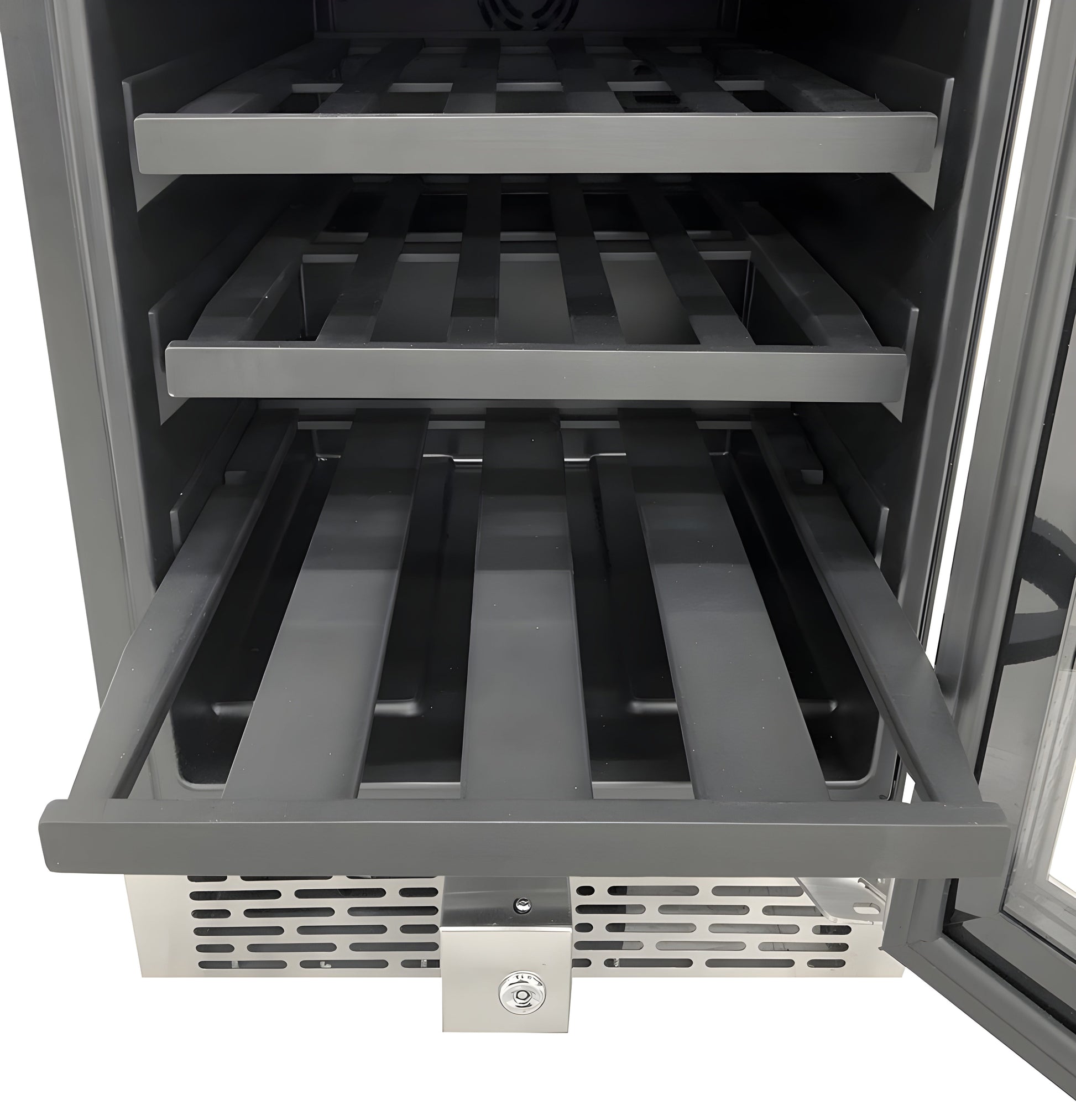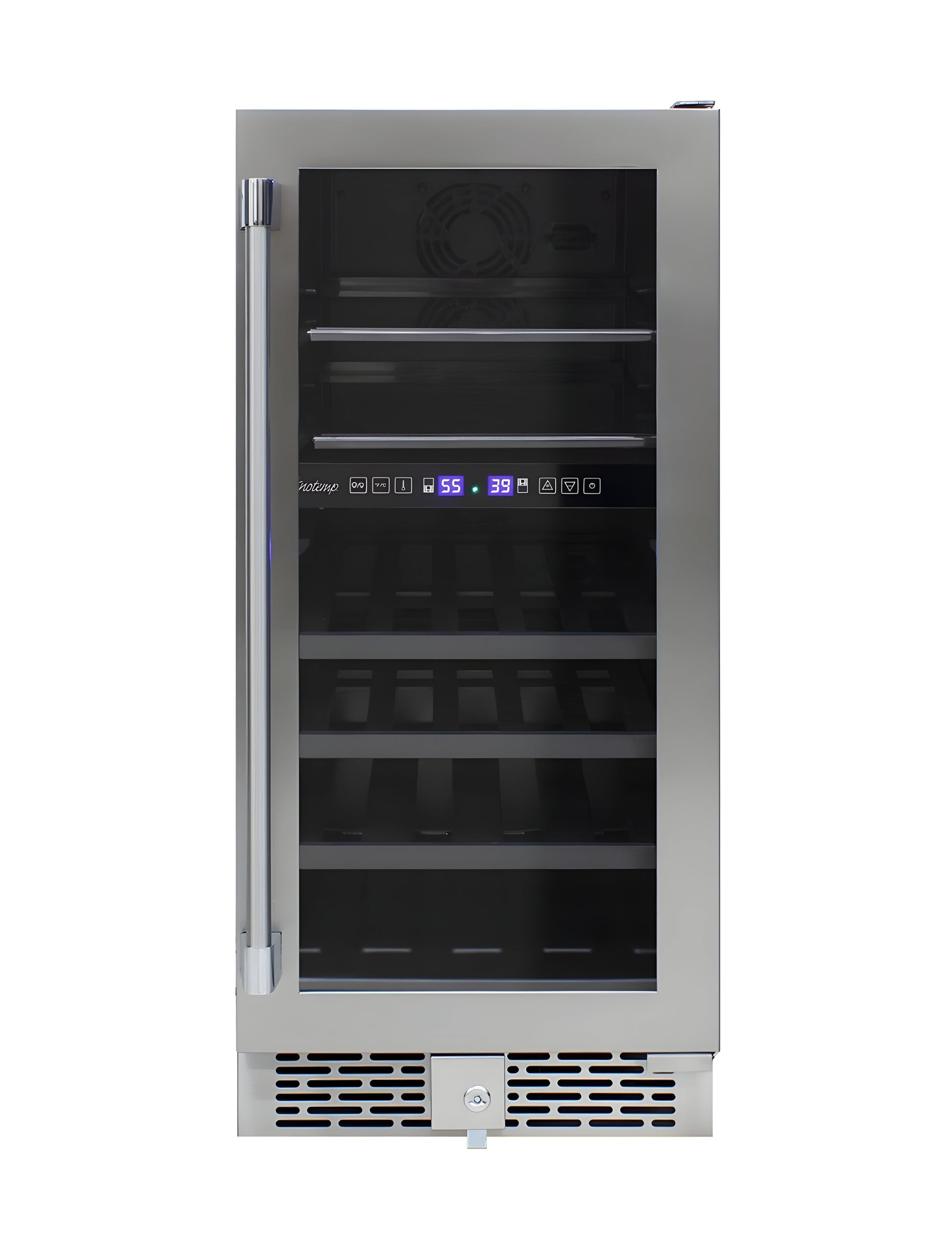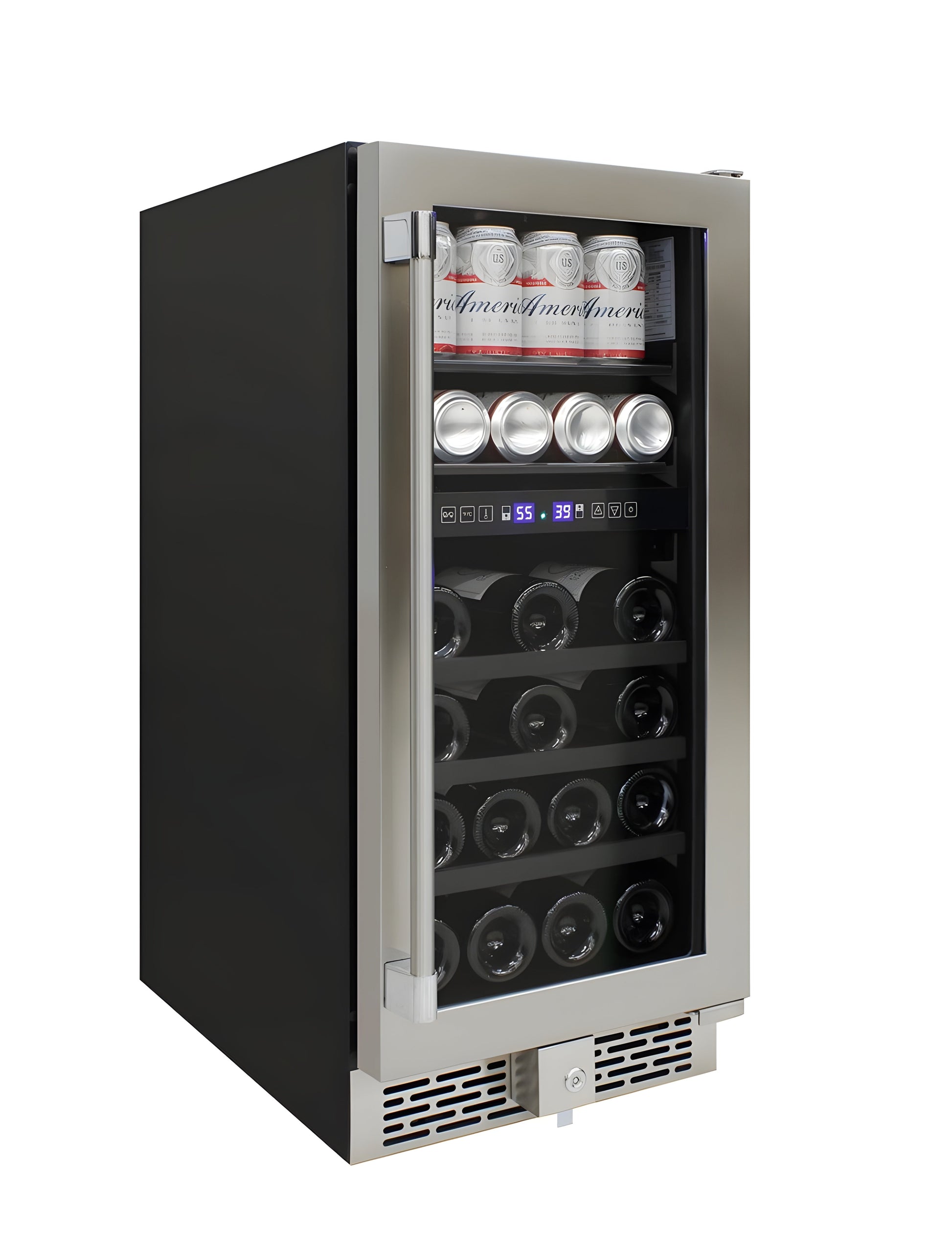 Vinotemp's 15-Inch Outdoor Dual-Zone Wine & Beverage Cooler is an extremely versatile unit and was designed to fit seamlessly into your cabinetry by providing a premium storage space for your beverages and wines without interrupting the style that your home environment demands. Modern styling features a dual-pane glass door with a stainless steel frame. This cooler allows you to set two separate temperatures to provide the optimum conditions for your wine and beverages. While this cooler is designed for the outdoors, it makes a perfect addition to any indoor space as well!