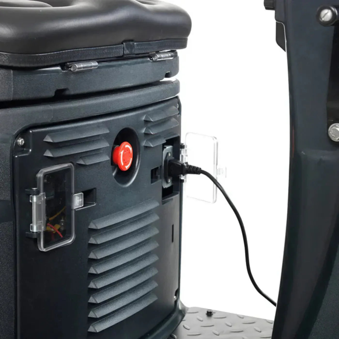 Side pocket for easy storage of paperwork USB port for charging portable electronics Powerful dual brush motors 200RPMs Robust and powerful: Use mechanical way to lift or lower the brush or squeegee. And the optional front bumper protects the machine for longer life-time  |