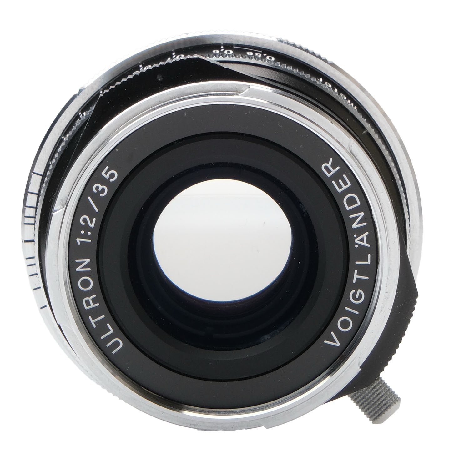 This Voigtlander 35mm f2 Ultron Asph Lens for Leica M (Black), #7160067, is in great condition with minor handling wear. I rate it cosmetically a (9). The focus and aperture rings are smooth, the aperture functions properly, and the glass is clean and clear with no haze, marks, or fungus. There are a few faint specks of dust inside, but they do not affect image quality. This lens includes front & rear caps and the original box.