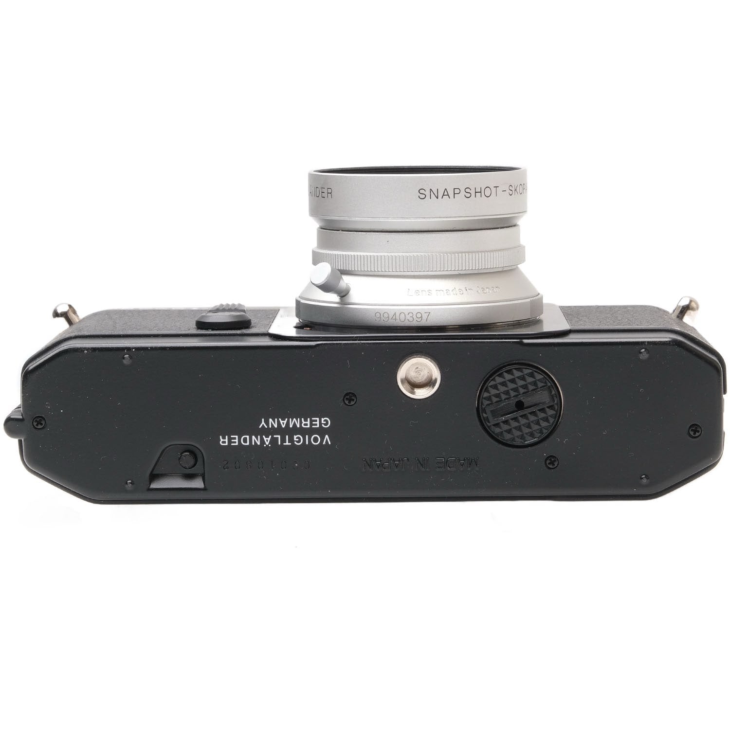 This Voigtlander Bessa-L (Black), #00010802, is in great condition with minor handling wear. I rate it cosmetically a (9+). The camera is in proper working order; film advances properly, the shutter is accurate at all speeds, the meter and self-timer function, and the battery compartment is corrosion-free. The included Voigtlander 25mm f4 Snapshot-Skopar MC lens, #9940397, is in similar condition, also rated a (9+). The focus and aperture rings are smooth, the aperture functions properly, and the glass is clean and clear with no haze, marks, or fungus. There are a few faint specks of dust inside, but they do not affect image quality. The included Voigtlander 25mm viewfinder is also clear. This listing includes a front lens cap, but no rear lens cap or body cap. The camera uses either one (1) 3V battery or two (2) 1.5V batteries (not included). Please refer to the photos for details.