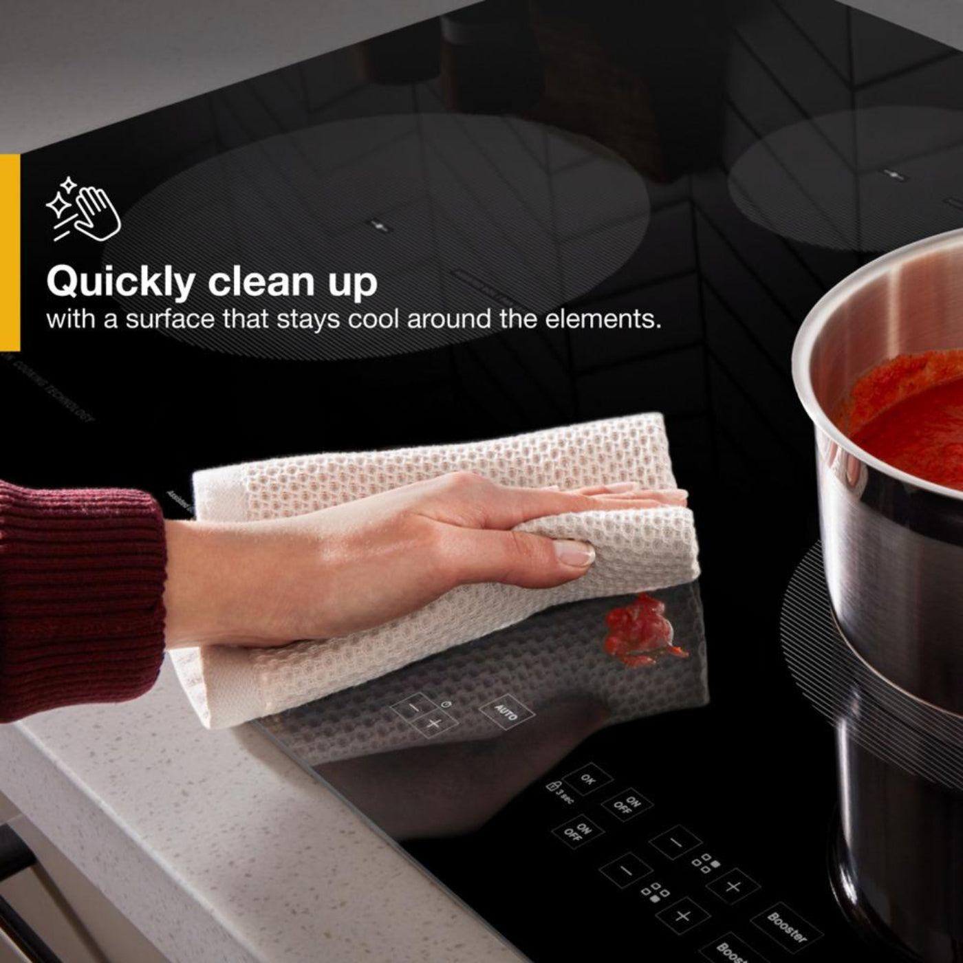 Cook dinner quickly thanks to this induction cooktop that boils water fast and offers Quick Cleanup. Also, when using dedicated cookware, optional assisted cooking features allow you to use your time more efficiently prepping other dishes.