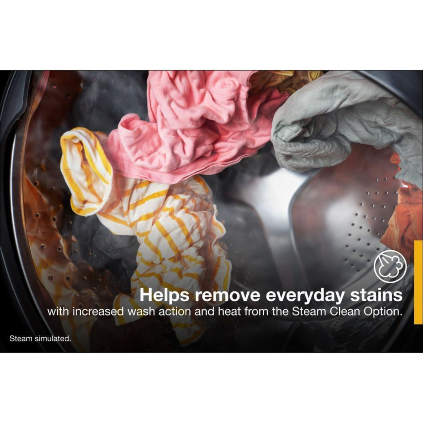 Clean regular-sized loads in as little as 25 minutes in this large capacity front load washer.* Get help removing everyday stains with the washing machine Steam Clean Option. The Tumble Fresh Option keeps clean clothes fresh up to 12 hours after the wash cycle ends. And with the washing machine Sanitize Cycle, increased water temperature sanitizes items like towels. *Based on a 10-lb load, Regular/Quick Cycle.