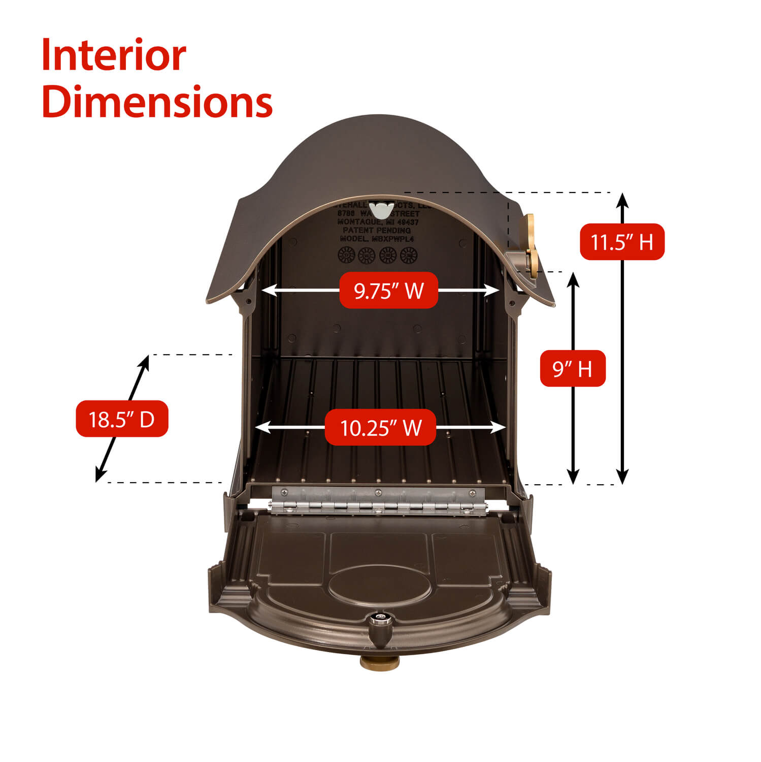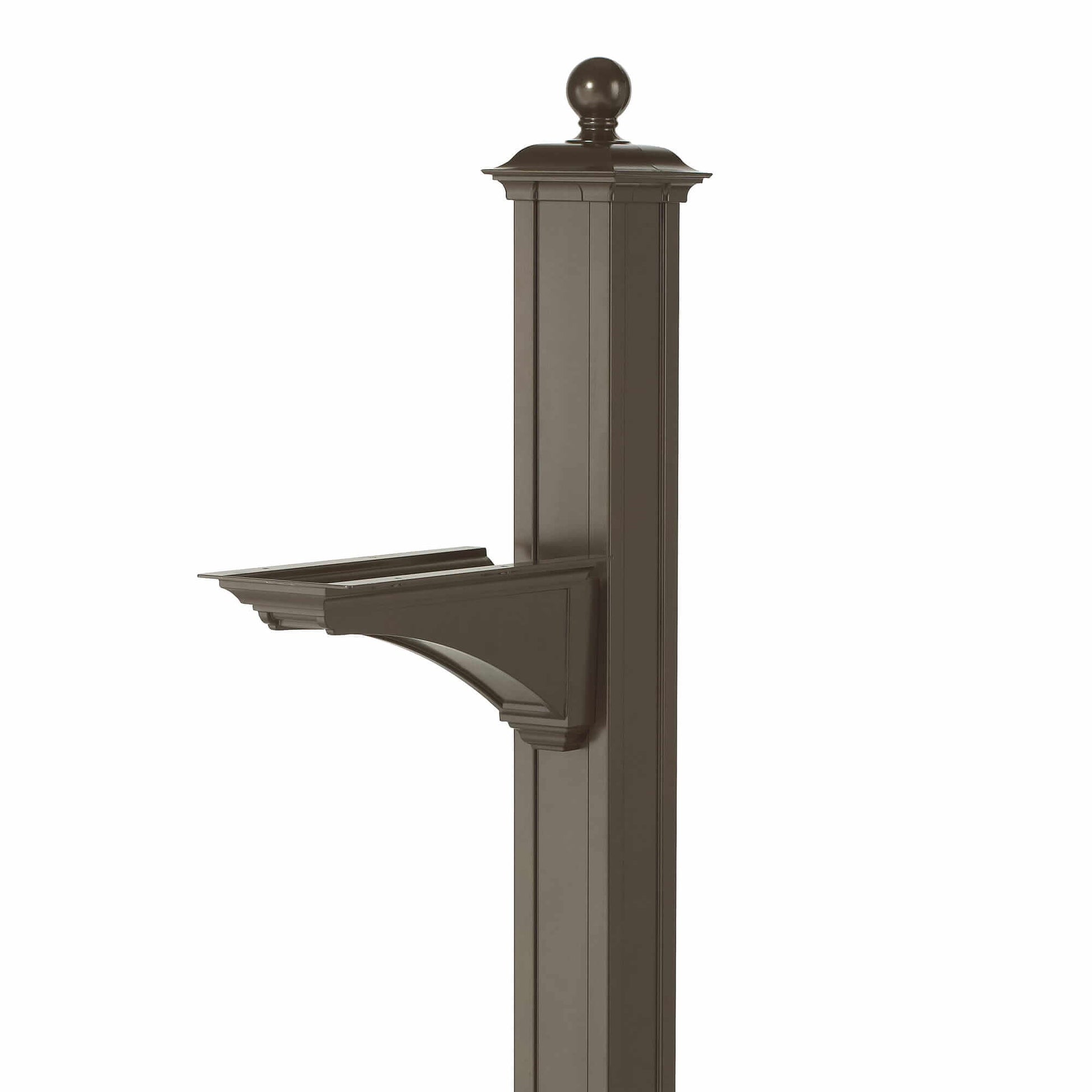 The Balmoral Large Capacity Mailbox & post package features an elegant design enhancing the curb appeal of your home. It includes side plaques to display your street name and number, family monogram and plant hanger.