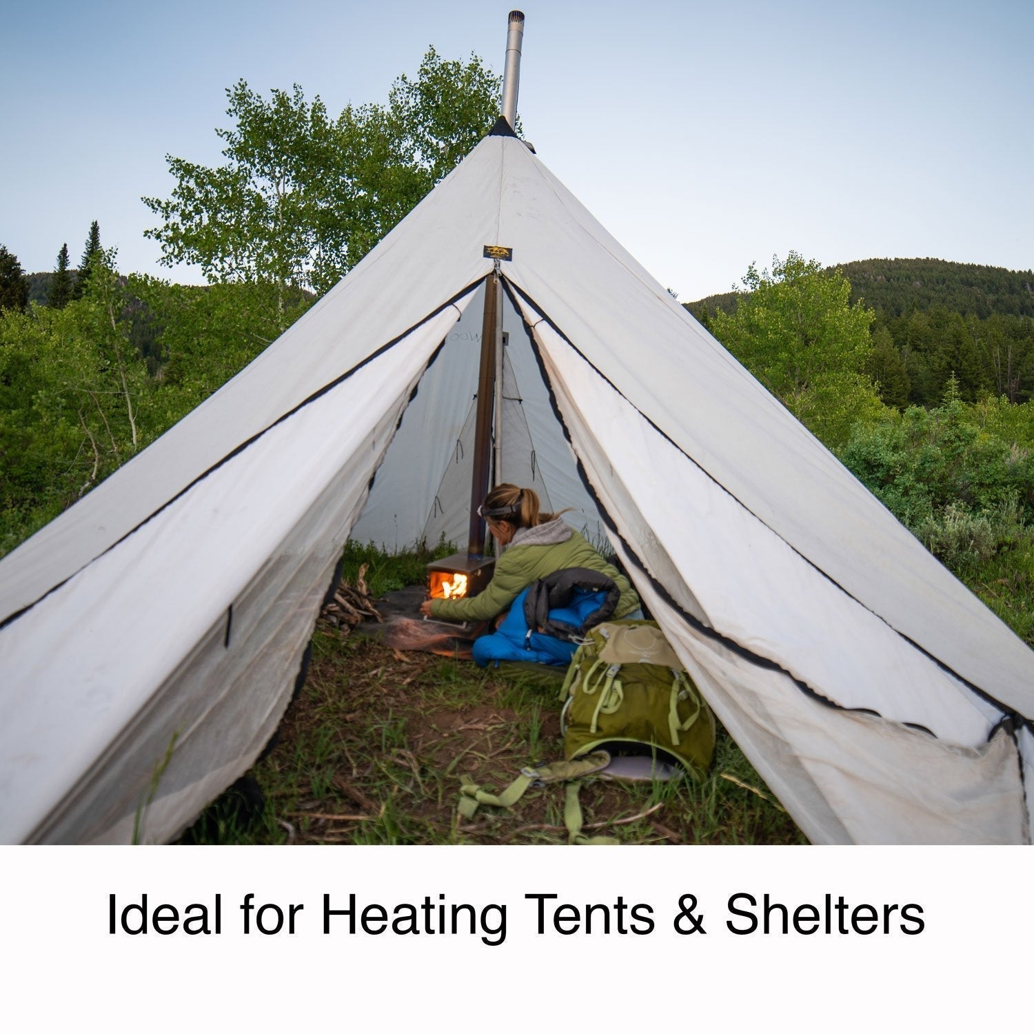 With a compact pack size and low weight of just 4lbs, the Winnerwell Fastfold Titanium Wood Burning Tent Stove is the premier ultralight tent stove for backcountry skiers, hunters, and explorers. Ideal for use in lightweight stove-compatible shelters like pyramid and teepee tents. The Fastfold design sets a new standard in reliable, hassle-free set-up. There are no hardware parts to lose or fumble with cold hands, simply fold the walls into place and secure them with the integrated clasps. Plus, with the top of the stove removed, this stove functions well as an ultralight fire pan for river runners and backpackers in sensitive wilderness areas.