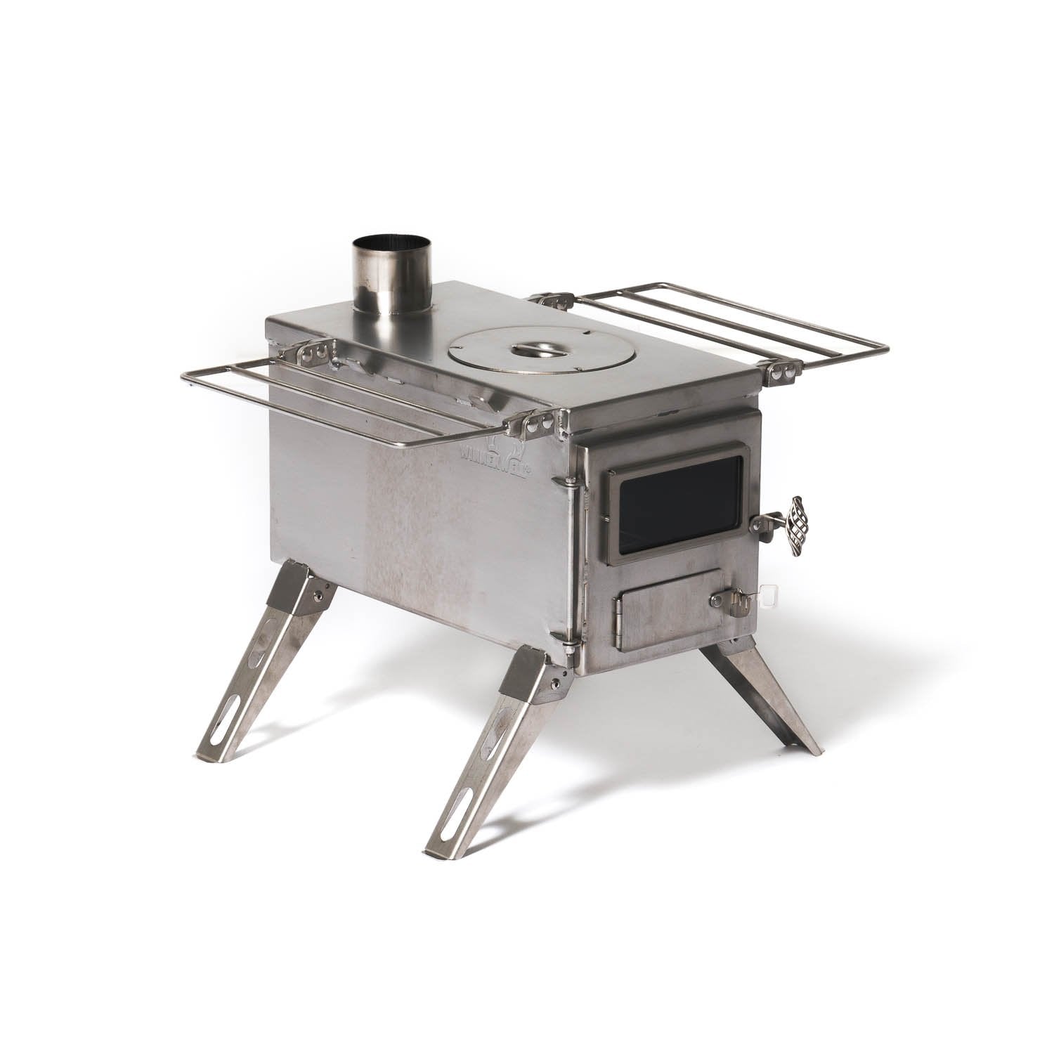 A: It is a wood-burning stove designed for heating and cooking in medium-sized tents, yurts, and outdoor shelters.