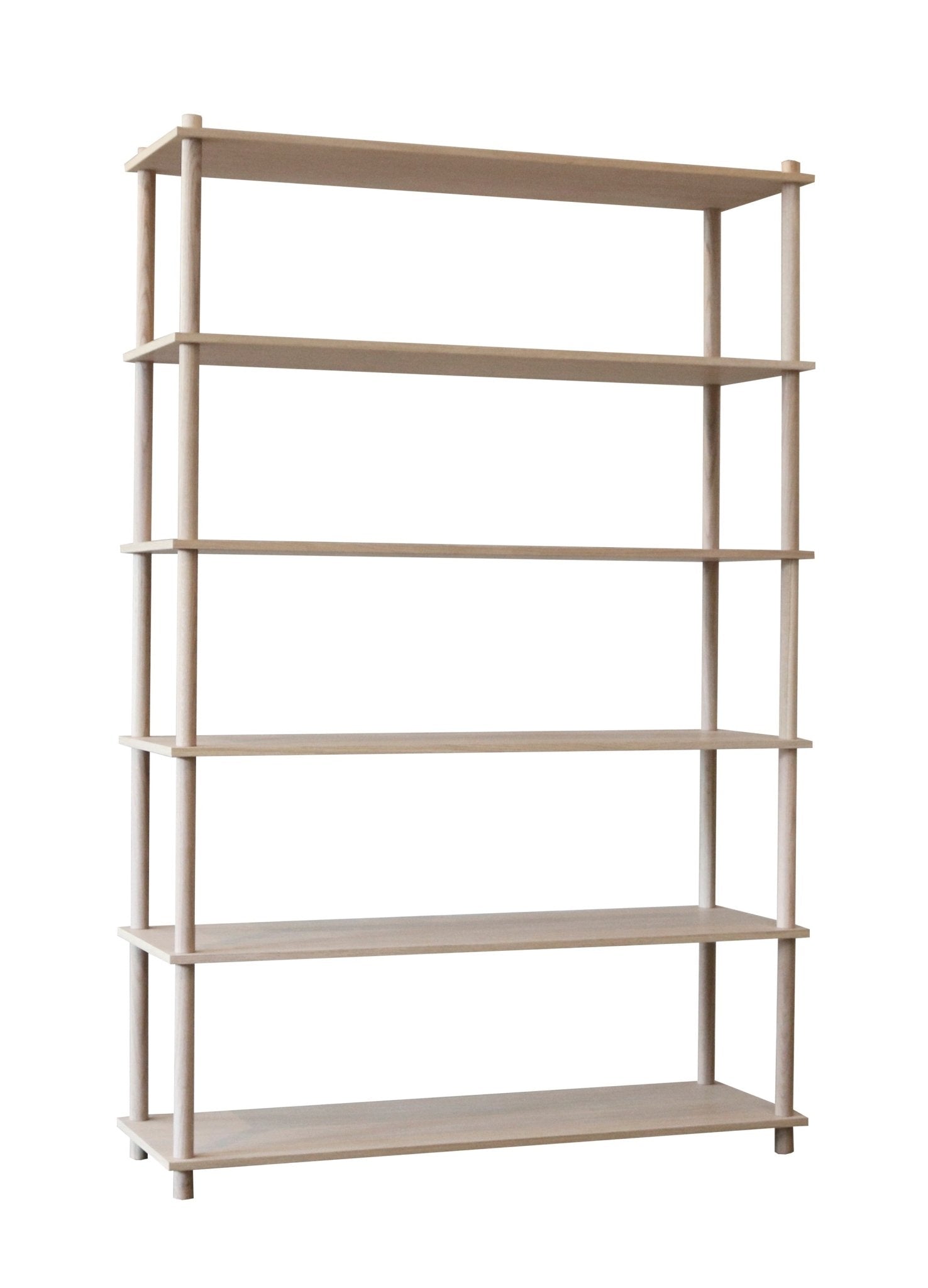 The Elevate Shelving System - 6 by Woud Design is a modular shelving solution that offers endless possibilities for customization. Designed for tool-free assembly, this system allows users to stack shelves and tighten dowels to create personalized configurations that match their specific needs. Whether used to display books, office supplies, artworks, or plants, this shelving system seamlessly integrates into various settings, enhancing both functionality and aesthetic appeal.