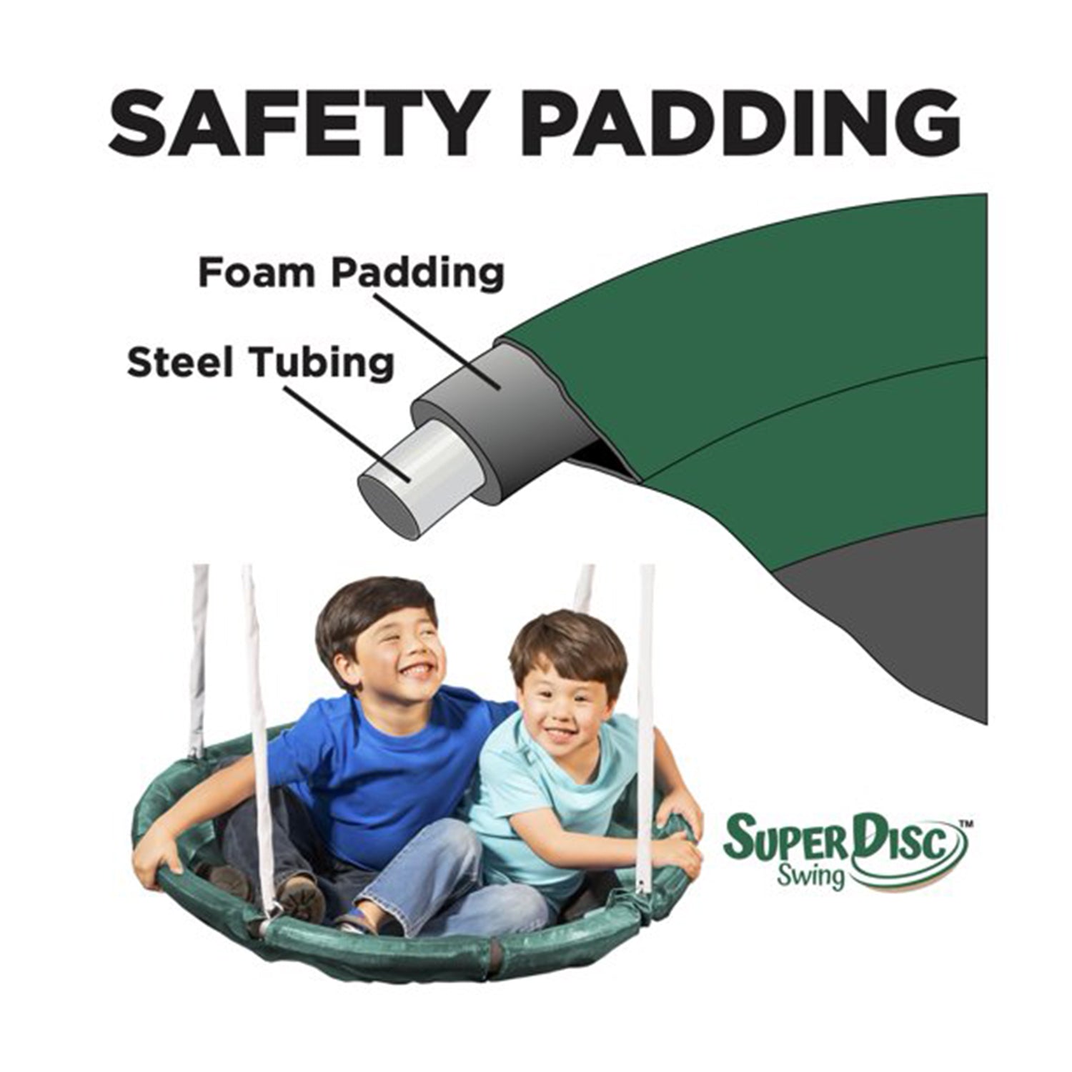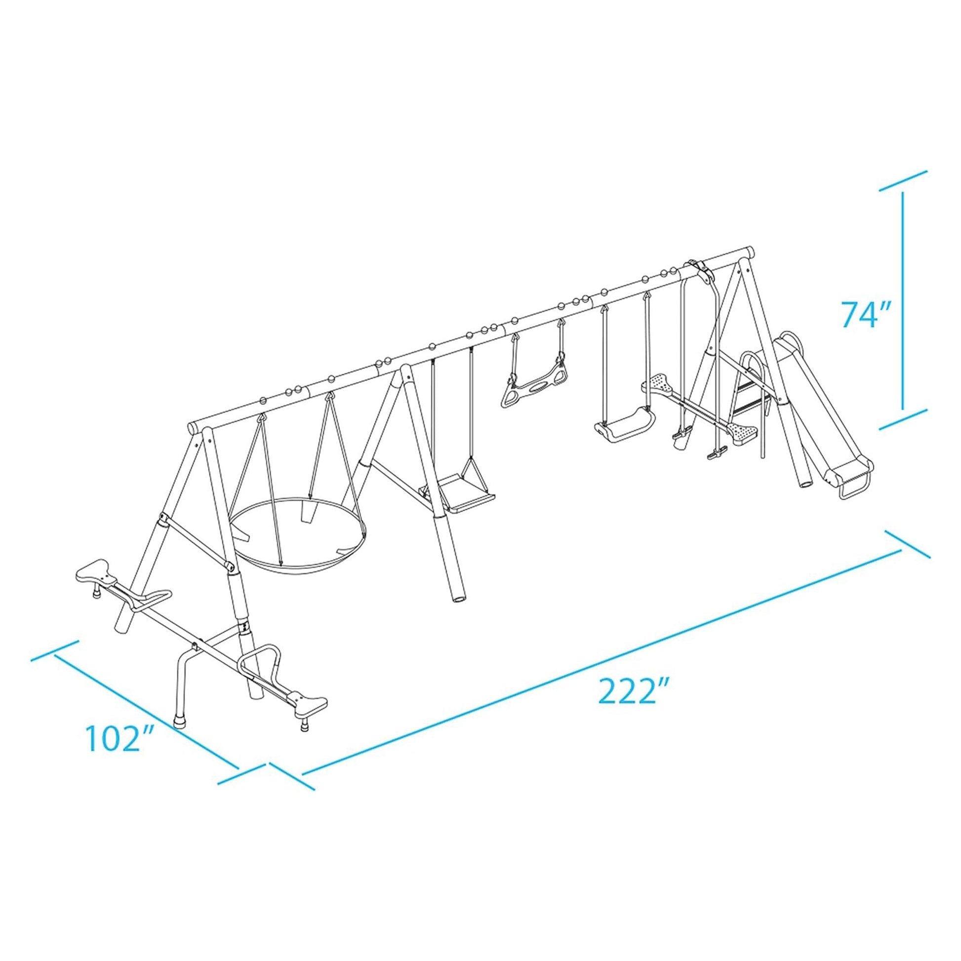 This backyard playground set offers a little bit of everything for your little ones. Comes with a slide, traditional swing, 2-seat Fun-Glidr, trapeze swing, Super Disc Swing, Stand N Swing, and see-saw. The frame of this outdoor swing set is crafted from a sturdy and durable steel frame that is built to hold up to 1000 pounds of kids ages 3 to 8 years old. Plus, since it can accommodate 10 kids at once, your kids can invite lots of friends for a day full of fun! Watch their faces light up with joy and laughter as they create unforgettable memories in the comfort of your own home.