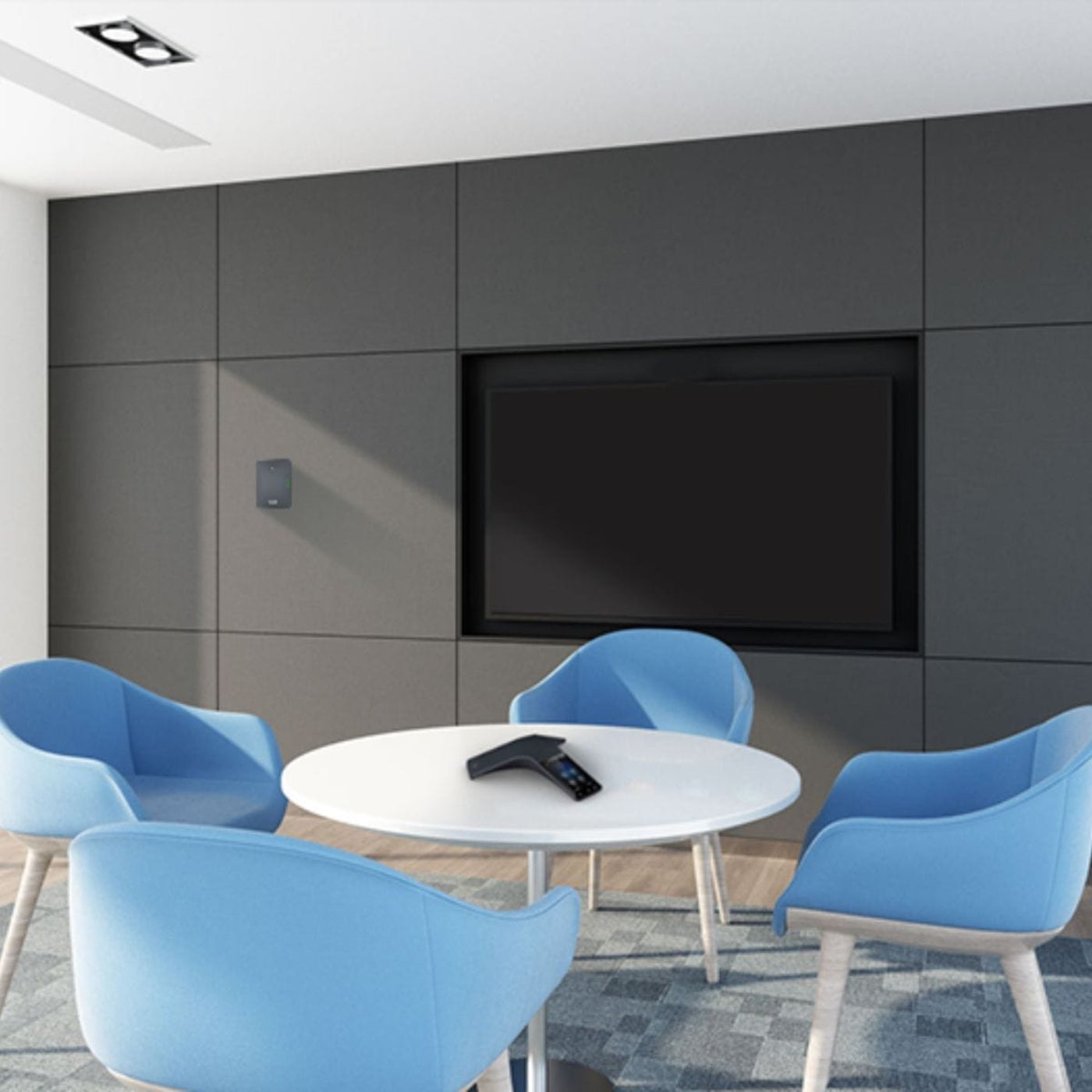 Yealink CP935W is a hermit in a conference room. Its black acoustics fabric can realize crystal-clear audio and is resistant to water, oil, and stain. Its ultra-thin body, appropriate desktop fit, and ingenious hidden wiring slot, perfectly fit for the simple business style in the conference rooms. Additionally, its built-in Linux system and easy-to-use UI interface, allow users to launch a meeting with one button and increase user adoption.Â