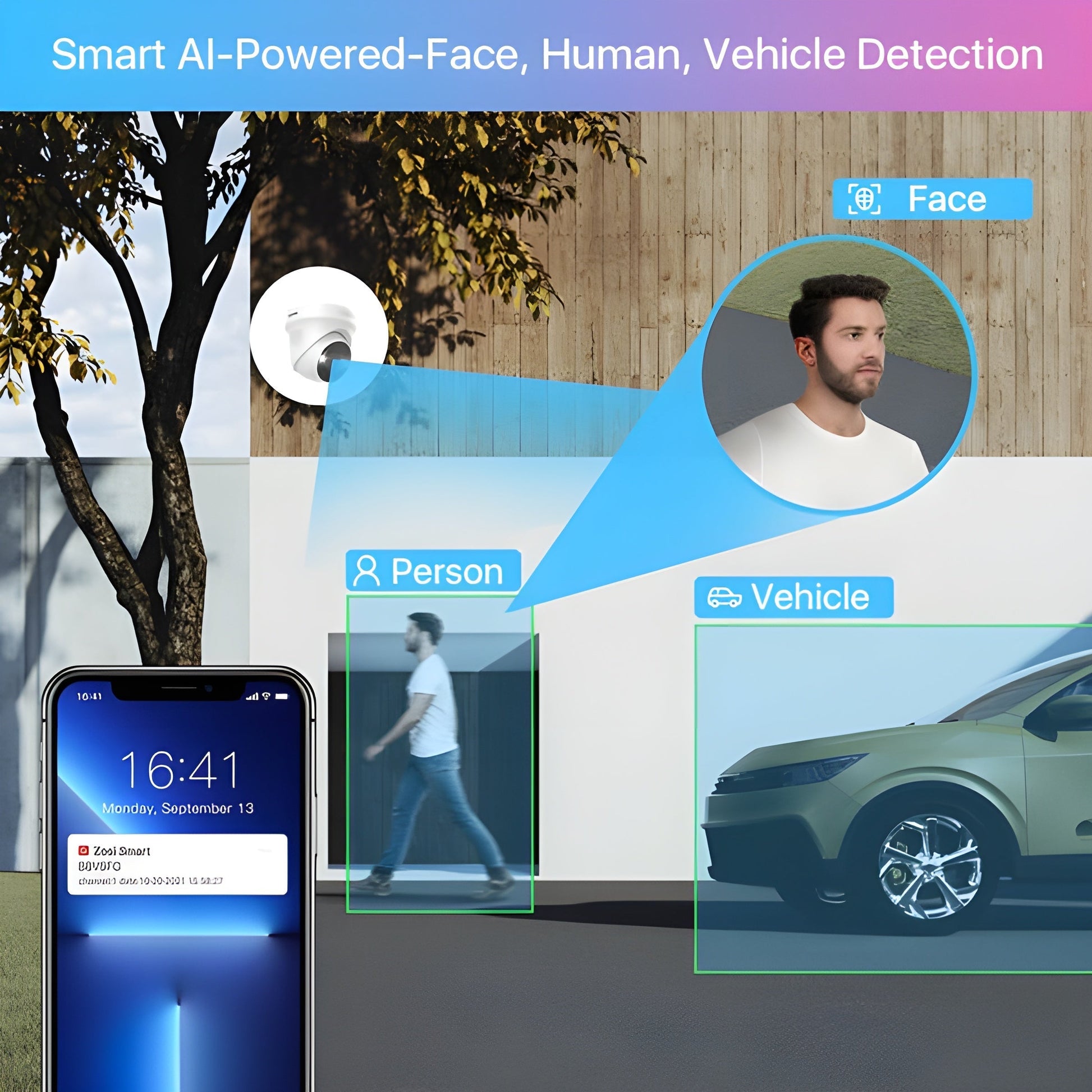 Powered by smart AI detection technology, this camera identify person and vehicles from other objects. Receive notifications whenever there is suspicious activity by a person or a vehicle lingering around your home or shop. No Subscription fee needed!